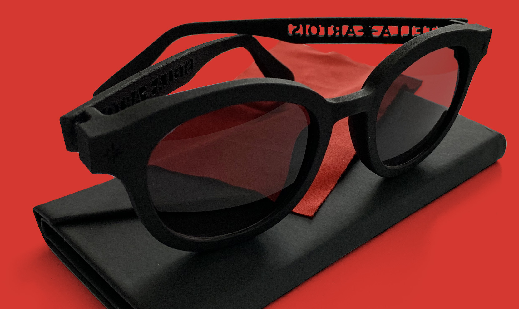 The shape and the matte black colour are timeless and unisex. Branding is subtle and incorporated into the design. The frame is 3D-printed in Italy from PA11 – 100% plant-based and bio-degradable nylon, giving it a tactile and rubber-like finish. The lenses are Japanese, polarised with 350 UV protection. Branded foldable case and a Stella Artois red napkin complete the package and make it perfect by the poolside.